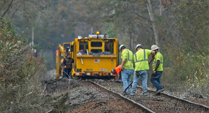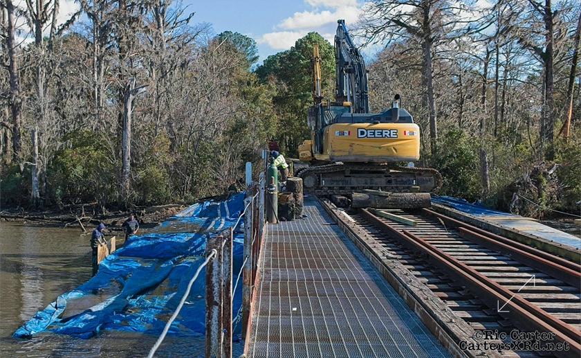 There’s lots of work going on along Carolina Coastal’s track the winter. Two jobs are seen in this gallery - Runyan Creek Trestle repair in Washington (frames 5-x) and tie replacement in Grimesland (frames 1-4). Week 49 was November 22-28.