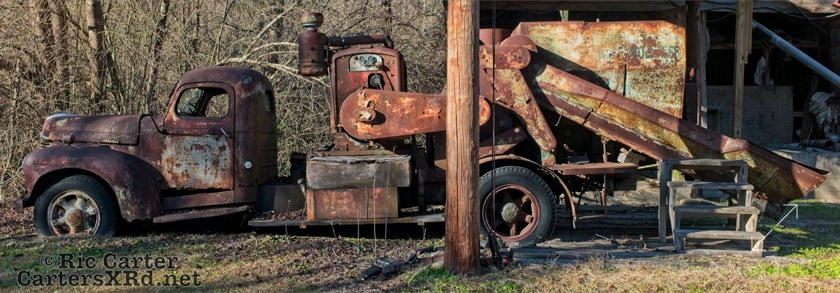The area between the Pamlico and Neuse rivers is long known for its potato production. This old potato house is in Grantsboro. I am not sure if the warehouse is still operating, but some of the equipment is clearly past its prime. I took these photos January 17, 2021.