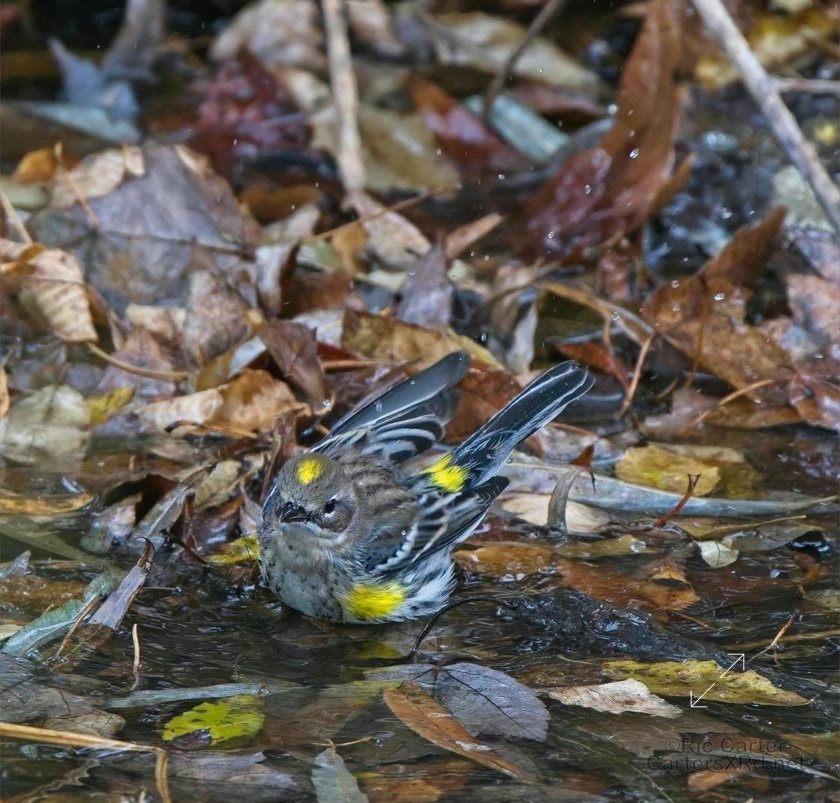Yellow-rumped warblers are probably our most common winter warbler. Their old name is myrtle warbler, and my favorite nickname for them is butter-butt. They are usually pretty drab looking unless you catch them riled up or getting cleaned up. I caught these guys at Pungo Lake December 10, 2021.