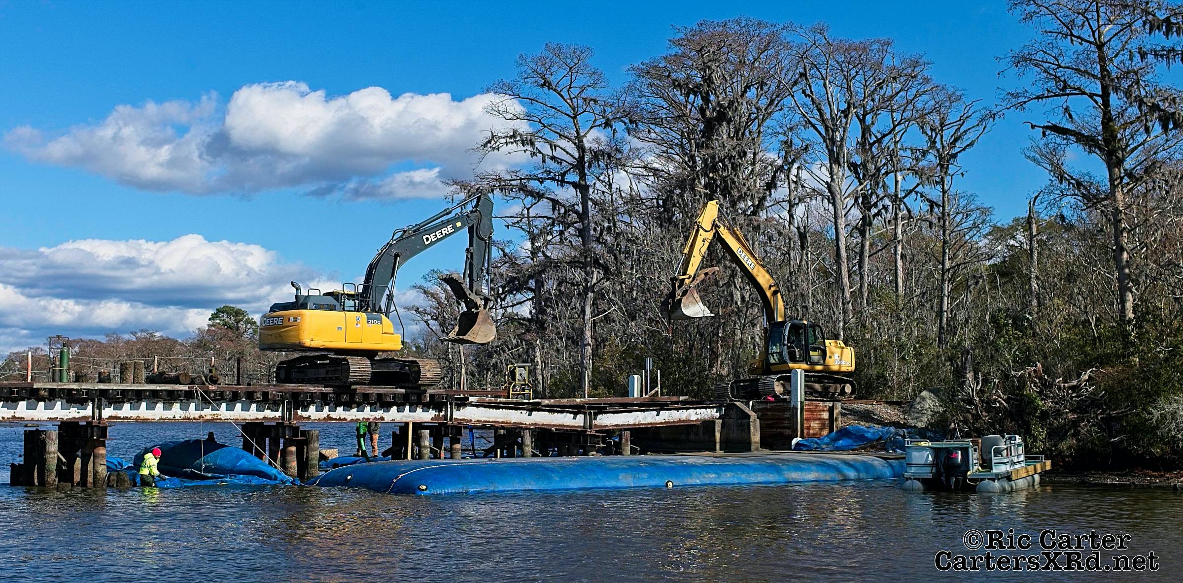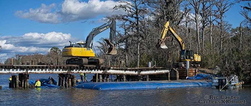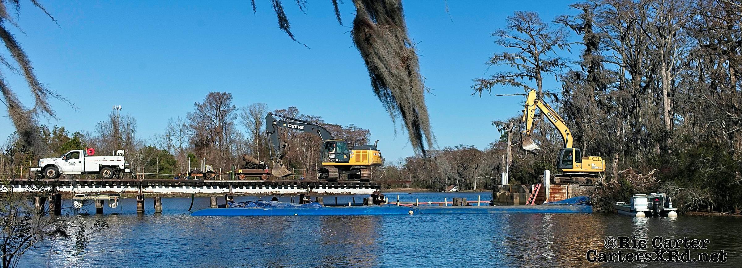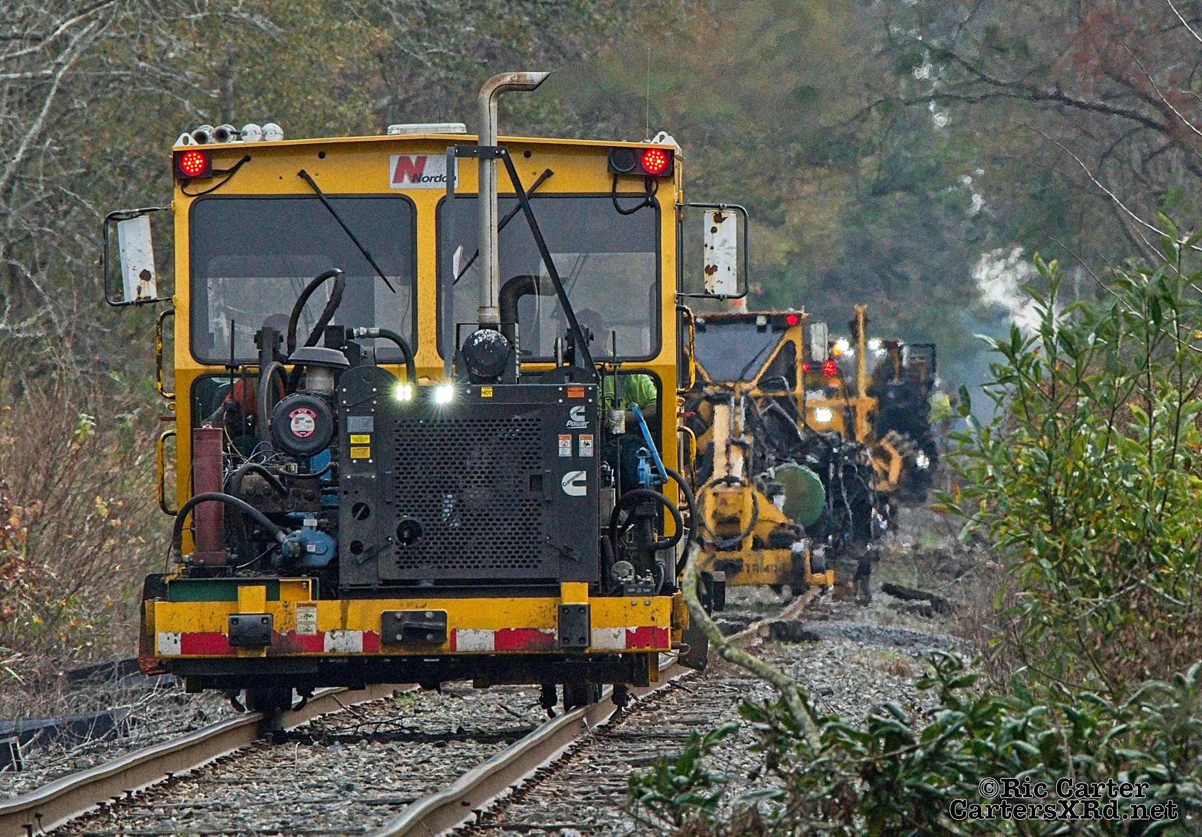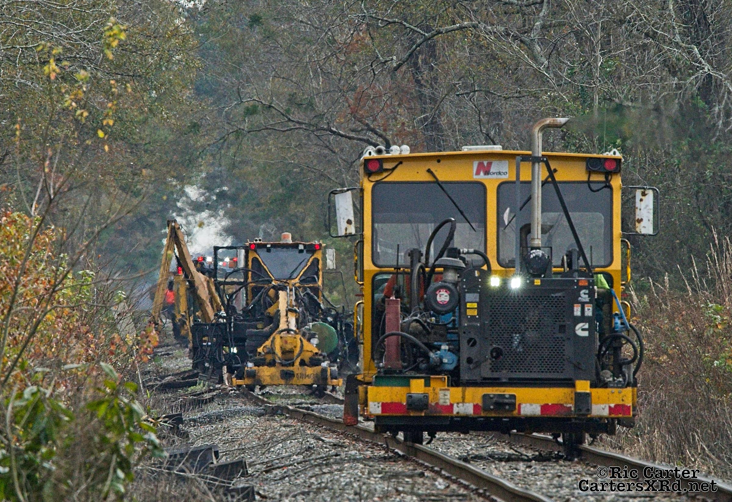 There’s lots of work going on along Carolina Coastal’s track the winter. Two jobs are seen in this gallery - Runyan Creek Trestle repair in Washington (frames 5-x) and tie replacement in Grimesland (frames 1-4). Week 49 was November 22-28.