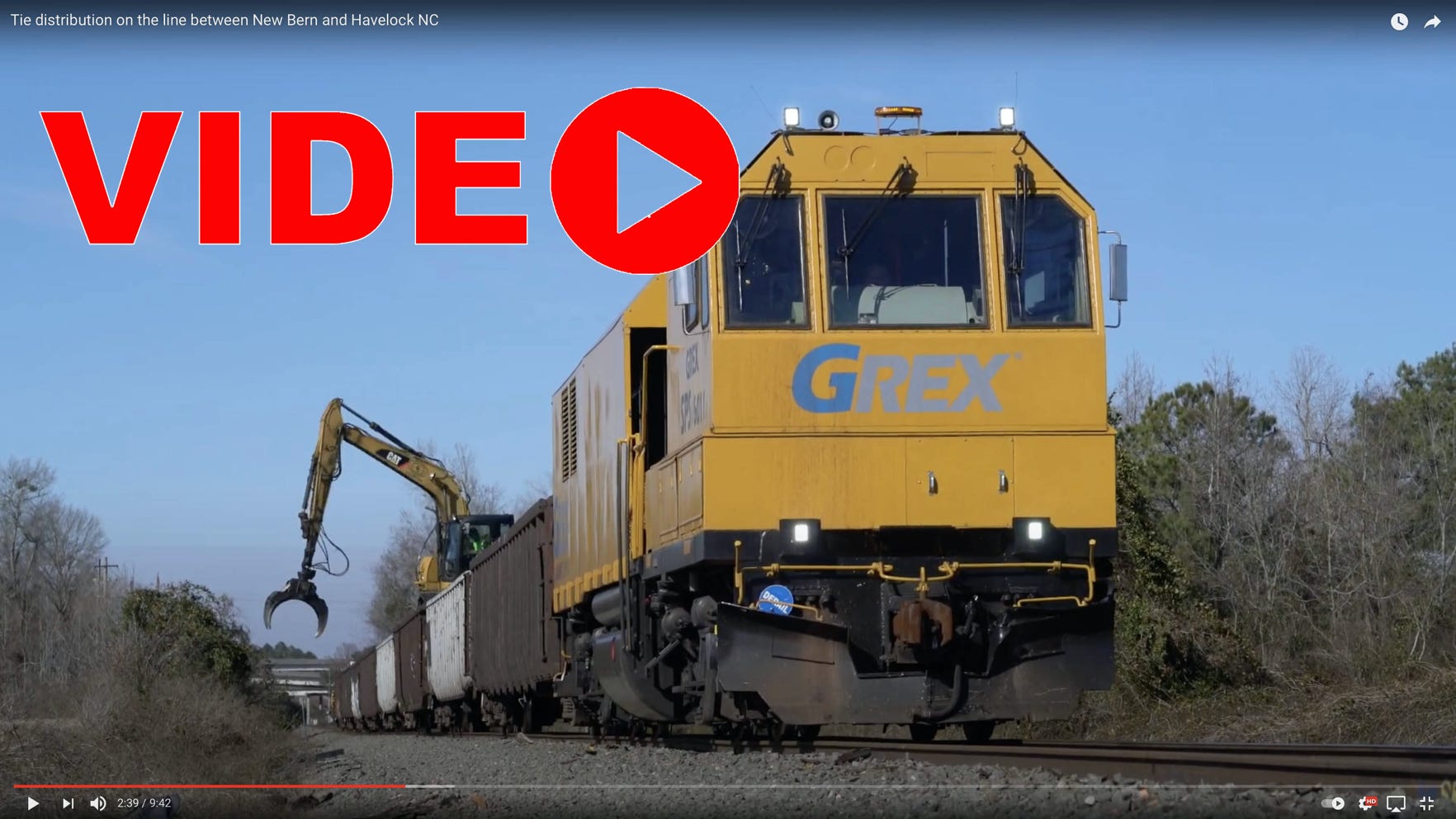 On Sunday, January 17, GREX started getting ahead of the maintenance-of-way crews, placing ties along the New Bern/Havelock line where track was replaced late last year. It is seen here operating by the New Bern Airport. There are stills in the Rail Maintenance-of -Way of Week 3 here.