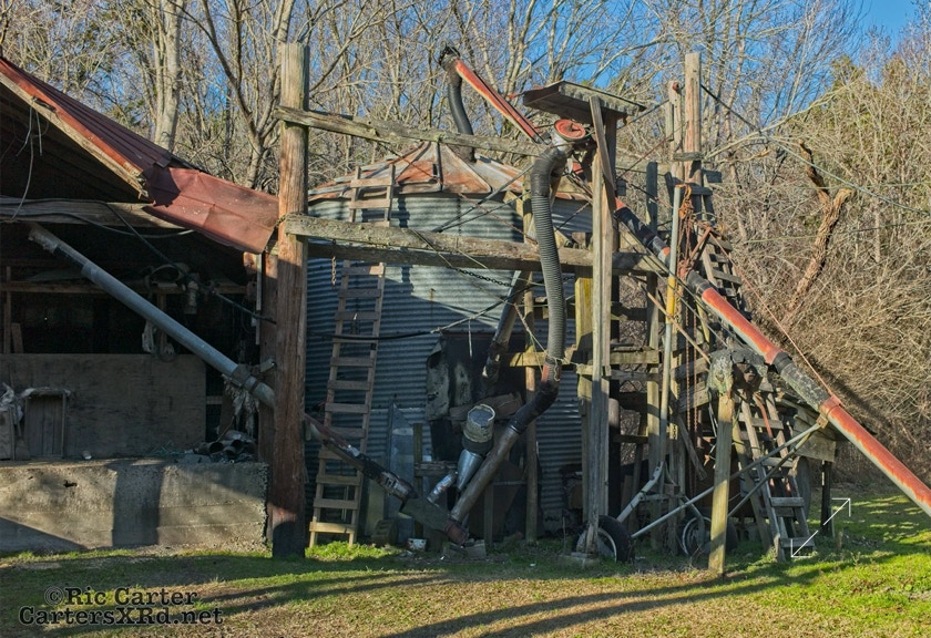 The area between the Pamlico and Neuse rivers is long known for its potato production. This old potato house is in Grantsboro. I am not sure if the warehouse is still operating, but some of the equipment is clearly past its prime. I took these photos January 17, 2021.