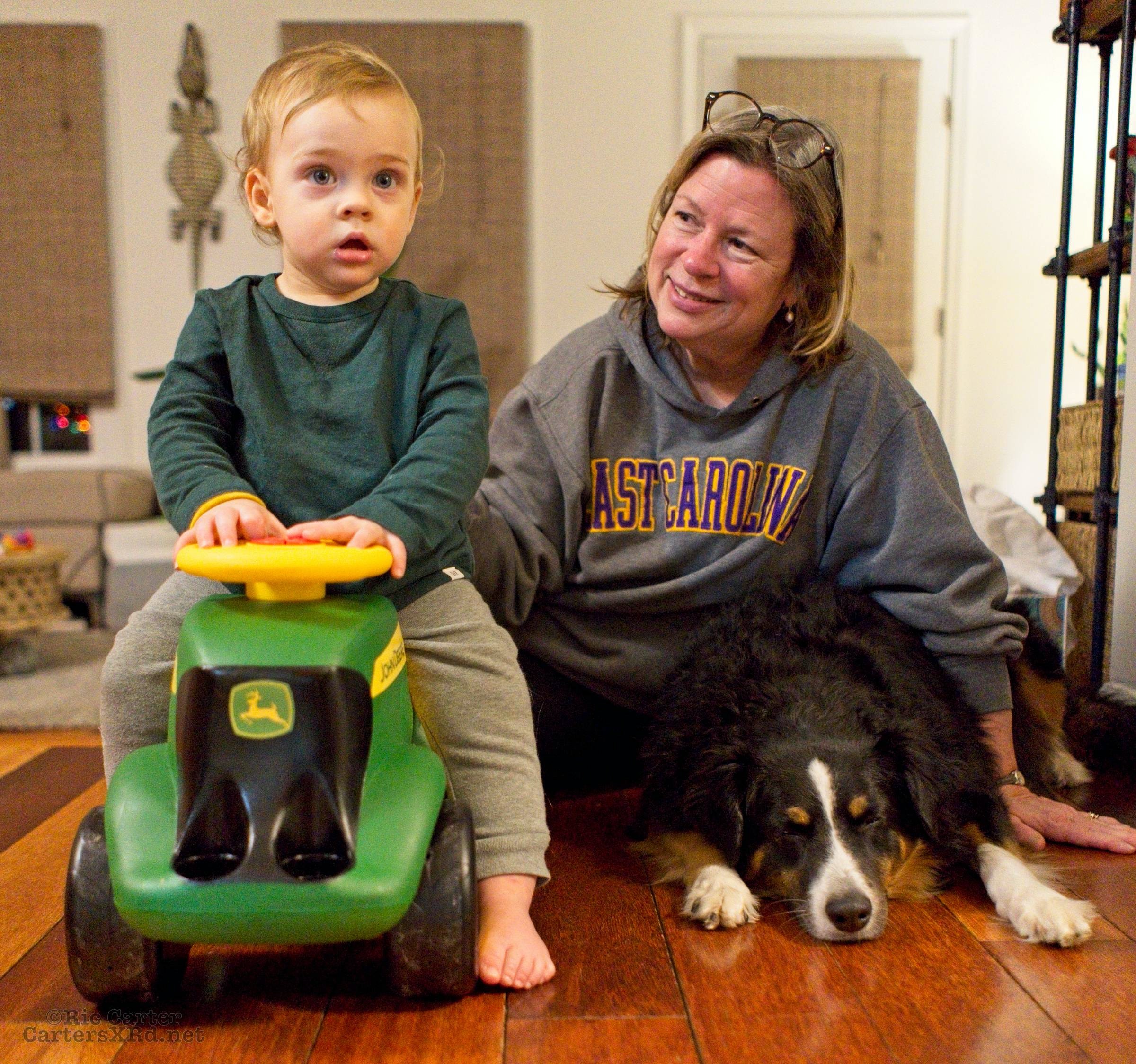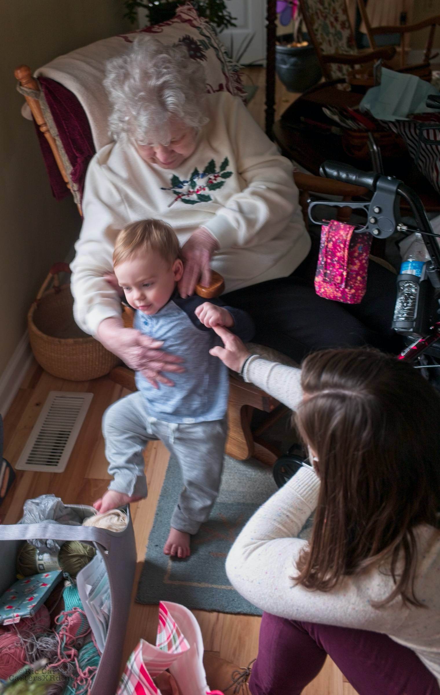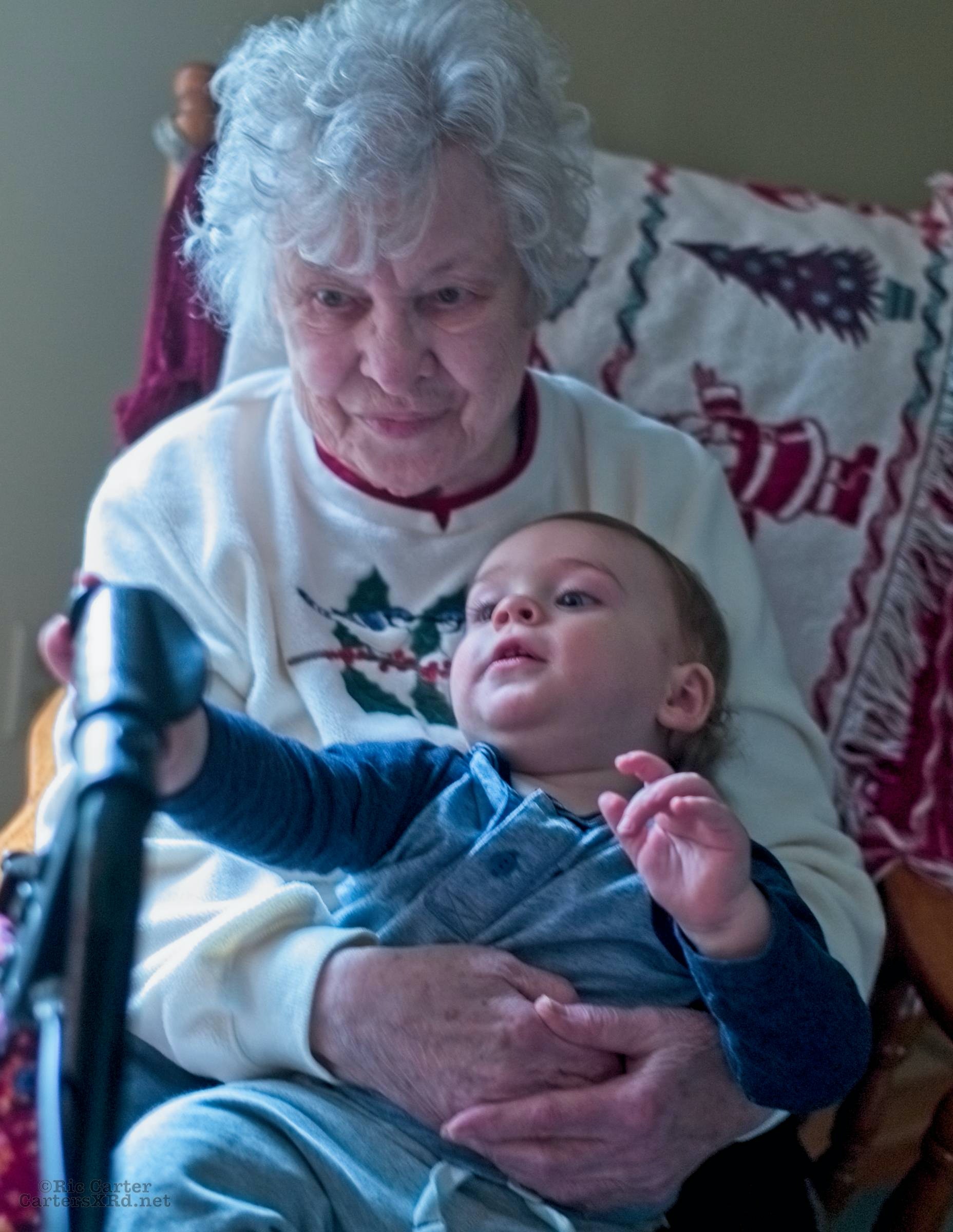 Okay, this week’s PAW is family Christmas pictures. They include a visit with Great Grandma Love, Gray in the chair that belonged to his great great grandfather and namesake, as well as fun with new toys. Week 52 was December 20-26, 2020.