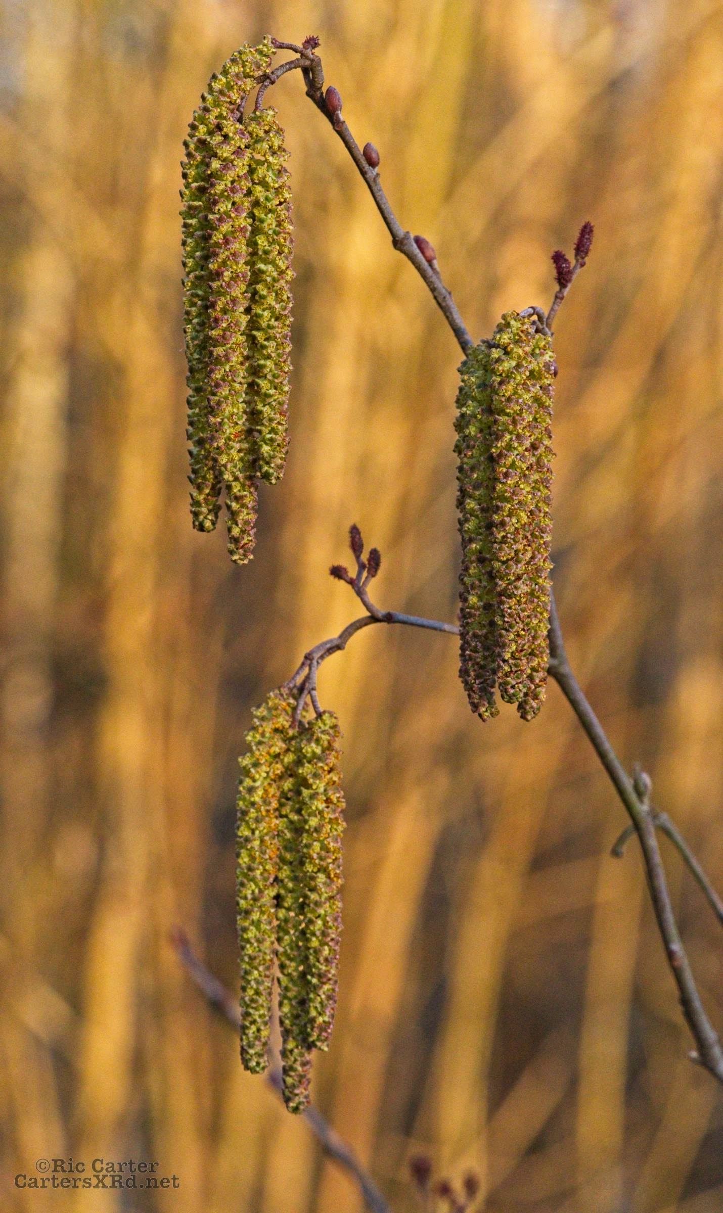 Earliest flower in our yard this year - a little alder in the swamp. The long, hanging catkins are the female flower, and the little spikey reddish “buds” are the males. The males turn into a tiny cone to drop seeds much later in the year. This plant supports our “ranch” every year in which the ants raise and tend their aphids.