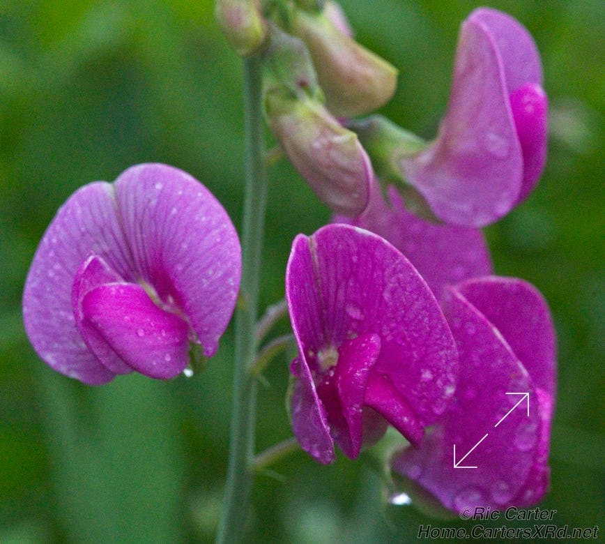These wild peas after a rain were growing in some heavy overgrowth near the railroad right-of way in Bristol TN.