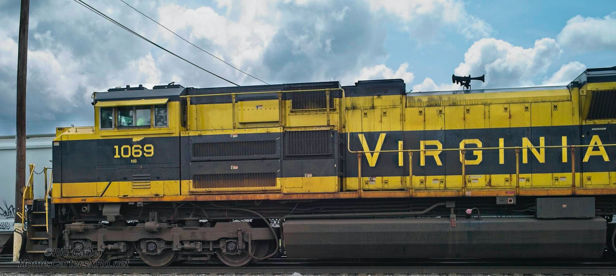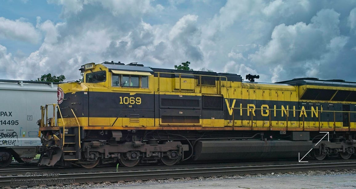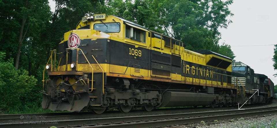 It’s always nice to see the locomotives which brag on Norfolk Southern’s roots. Here’s the Virginian unit as it passed through Bristol on July 19, 2021.