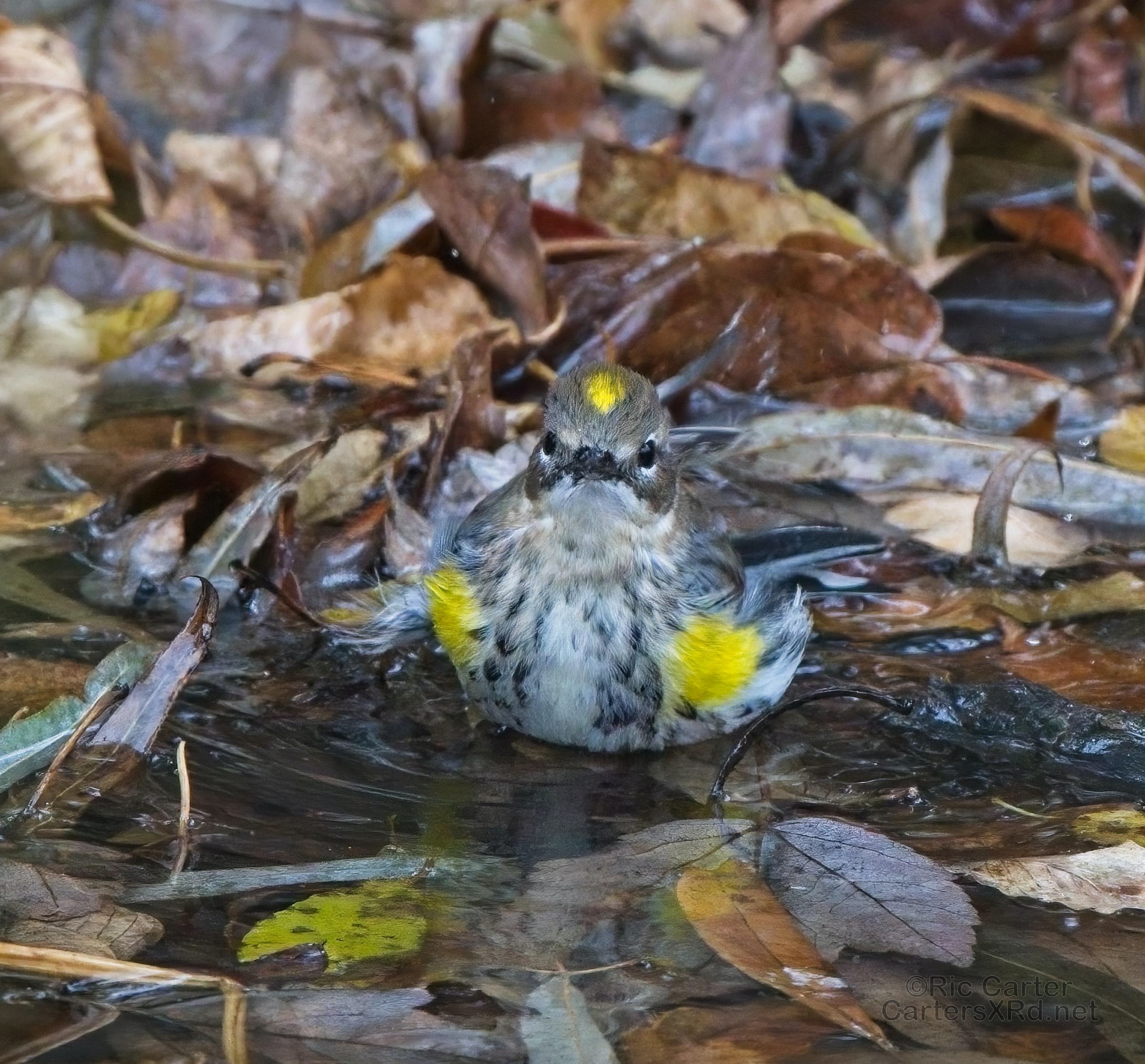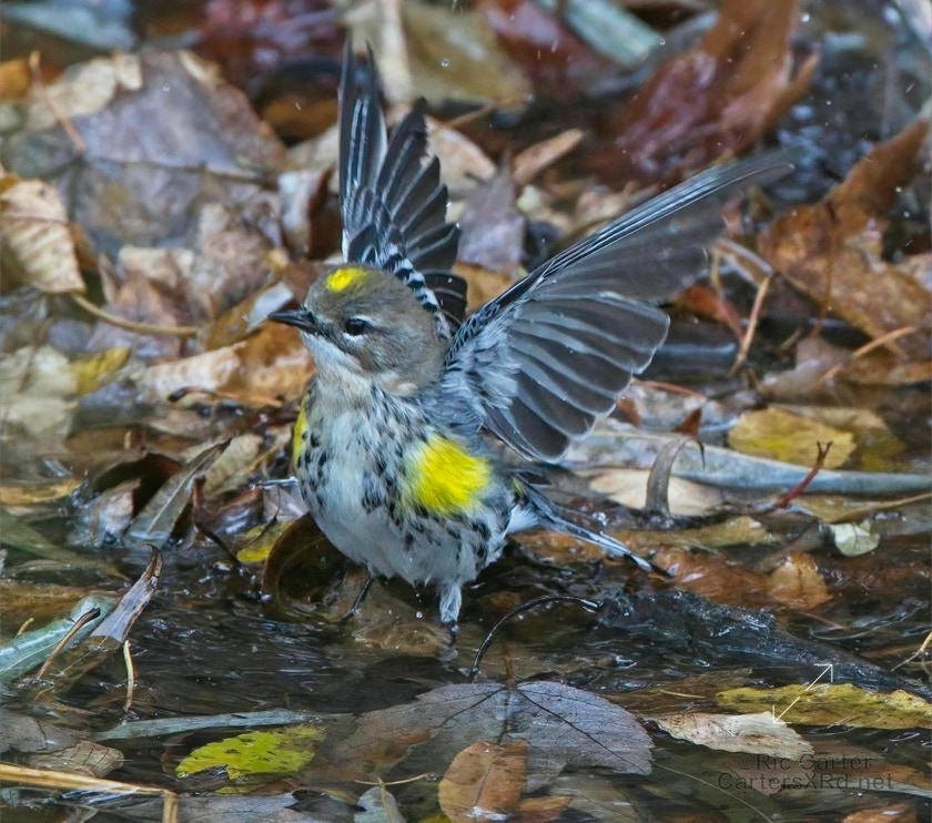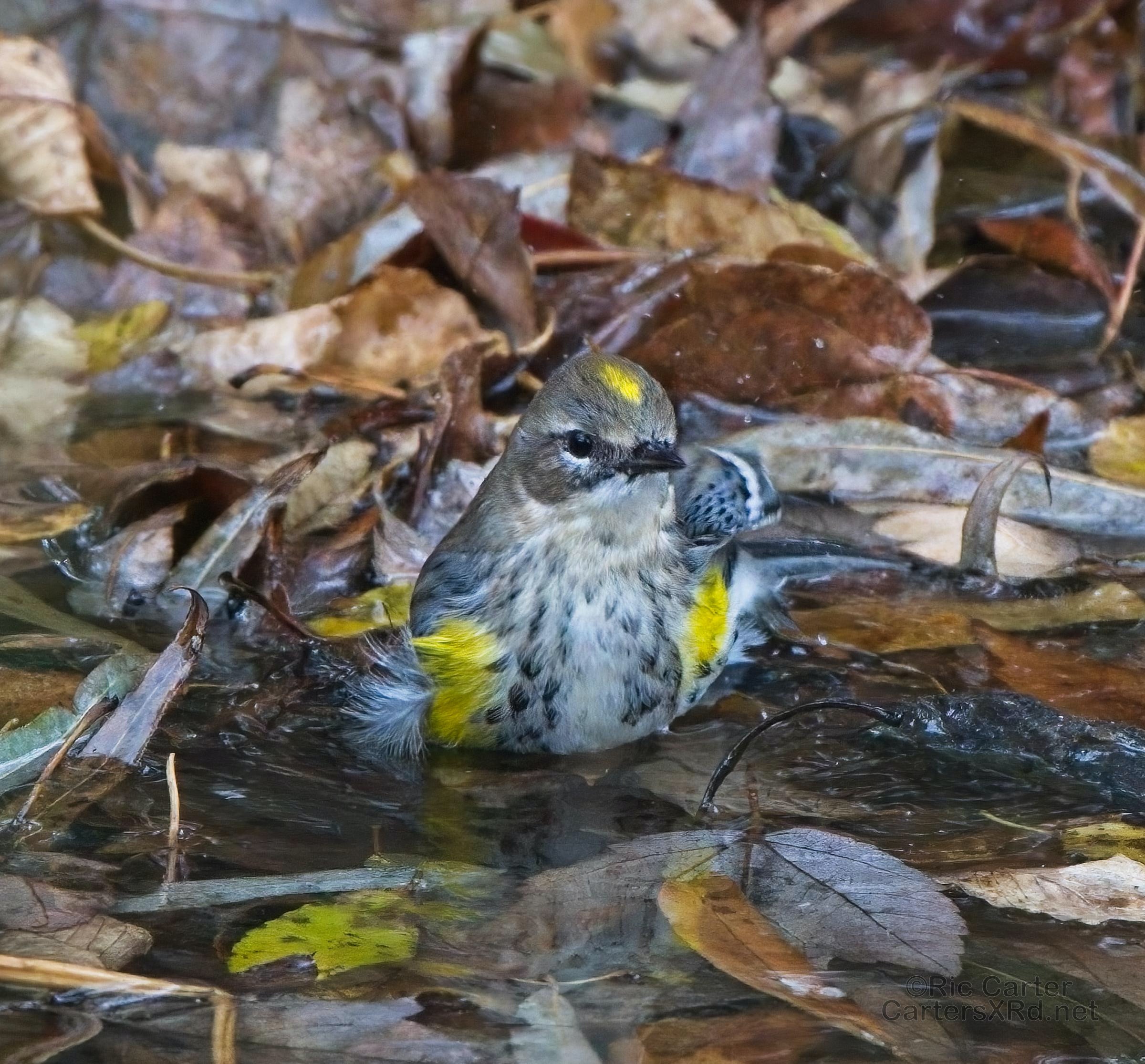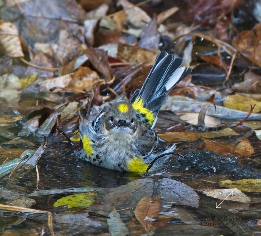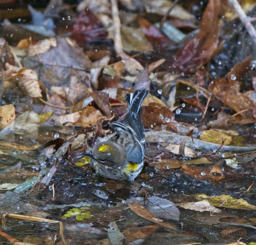 Yellow-rumped warblers are probably our most common winter warbler. Their old name is myrtle warbler, and my favorite nickname for them is butter-butt. They are usually pretty drab looking unless you catch them riled up or getting cleaned up. I caught these guys at Pungo Lake December 10, 2021.
